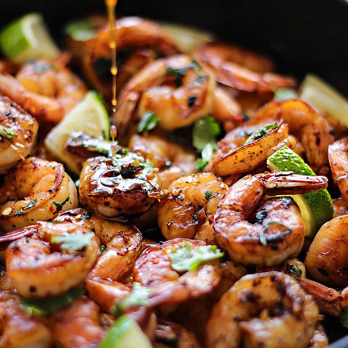 The small, sweet bright green limes so plentiful in Mexico – and used in everything – are actually Persian limes, a cross between a regular lemon and a key lime. This week’s recipes demonstrate their versatility, starting with Honey-Glazed Shrimp. (You could also use chicken instead.)