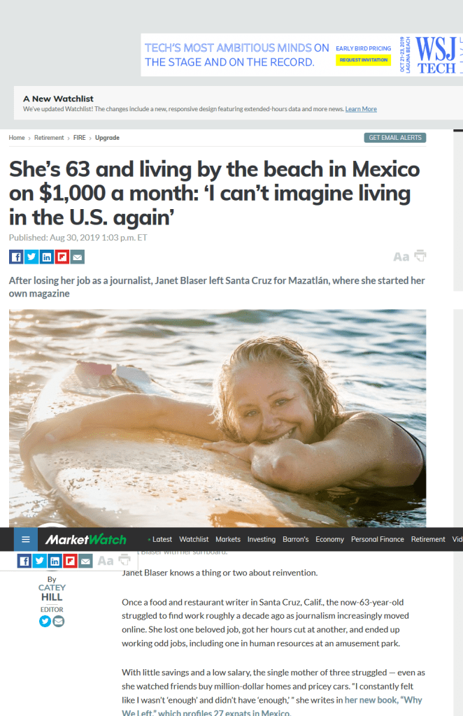 “She’s 63 and living by the beach in Mexico on $1,000 a month: ‘I can’t imagine living in the U.S. again'” / MarketWatch / Wall Street Journal