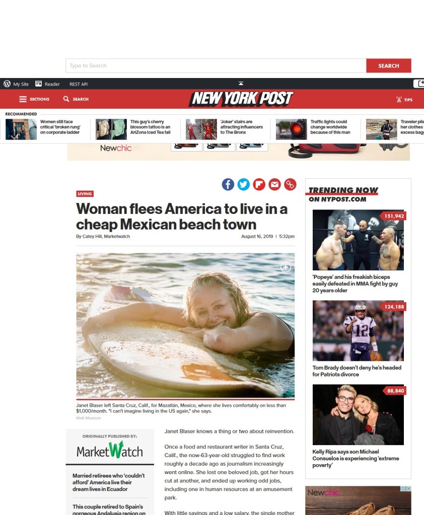 “Woman flees America to live in a cheap Mexican beach town” / New York Post